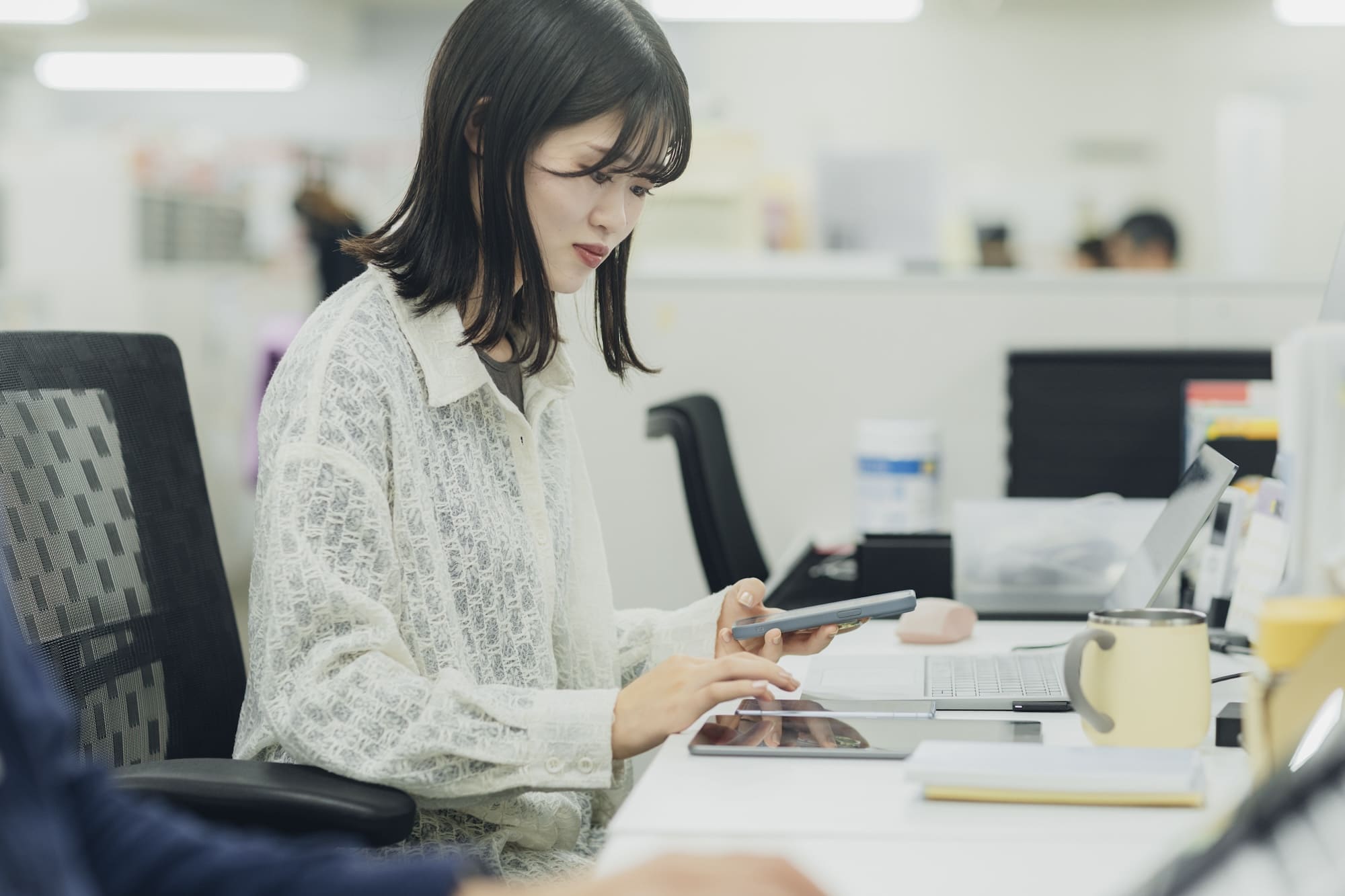 - 出社とテレワークの割合はちょうど半々くらいです。その日の業務内容や前後の予定、あとは気分で使い分けています。テレワークだと一人の作業に集中しやすく、出社すると他の社員とコミュニケーションをとりやすいなどそれぞれにメリットがあるので、両方を選べる環境はとても働きやすいと感じています。